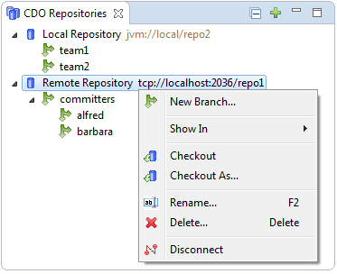 Local repositories can be shown in the CDO Server Browser: